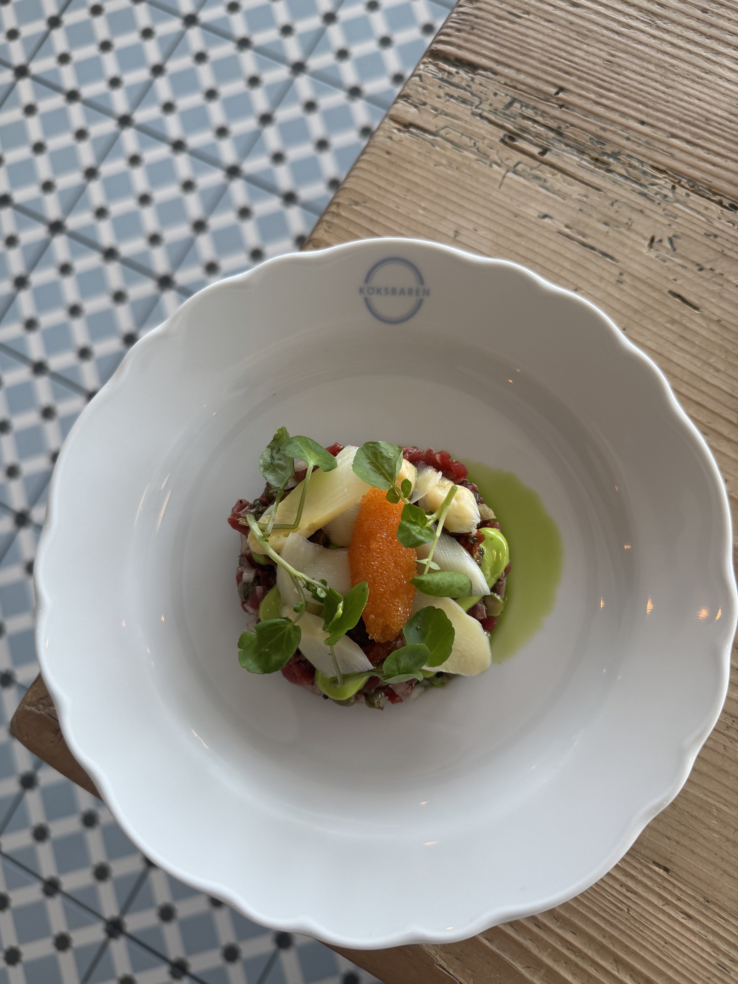 Vårens tartar på sotad oxfile och Kalix löjrom 275/345 kr